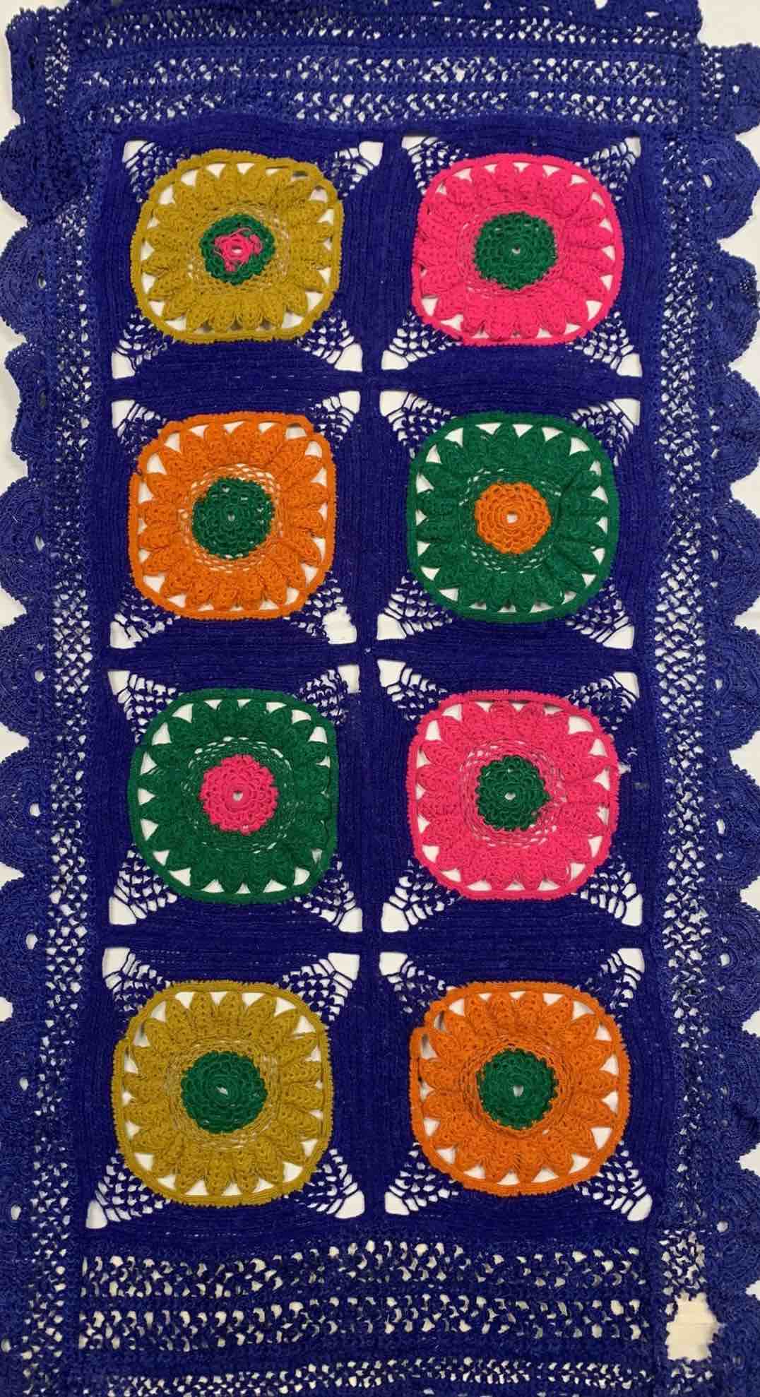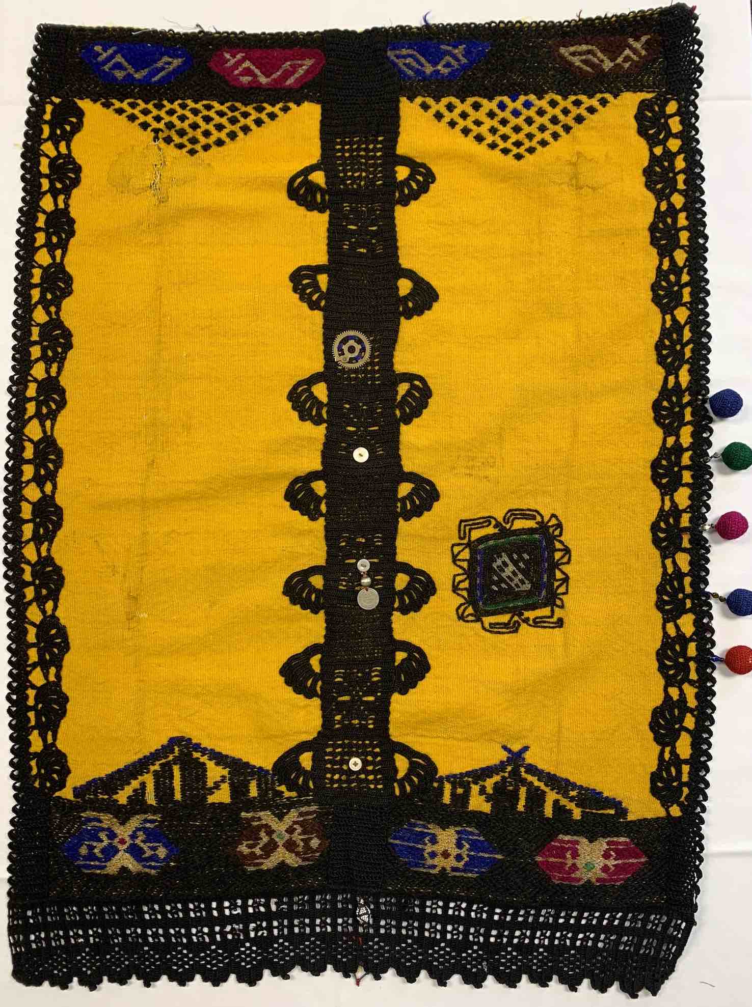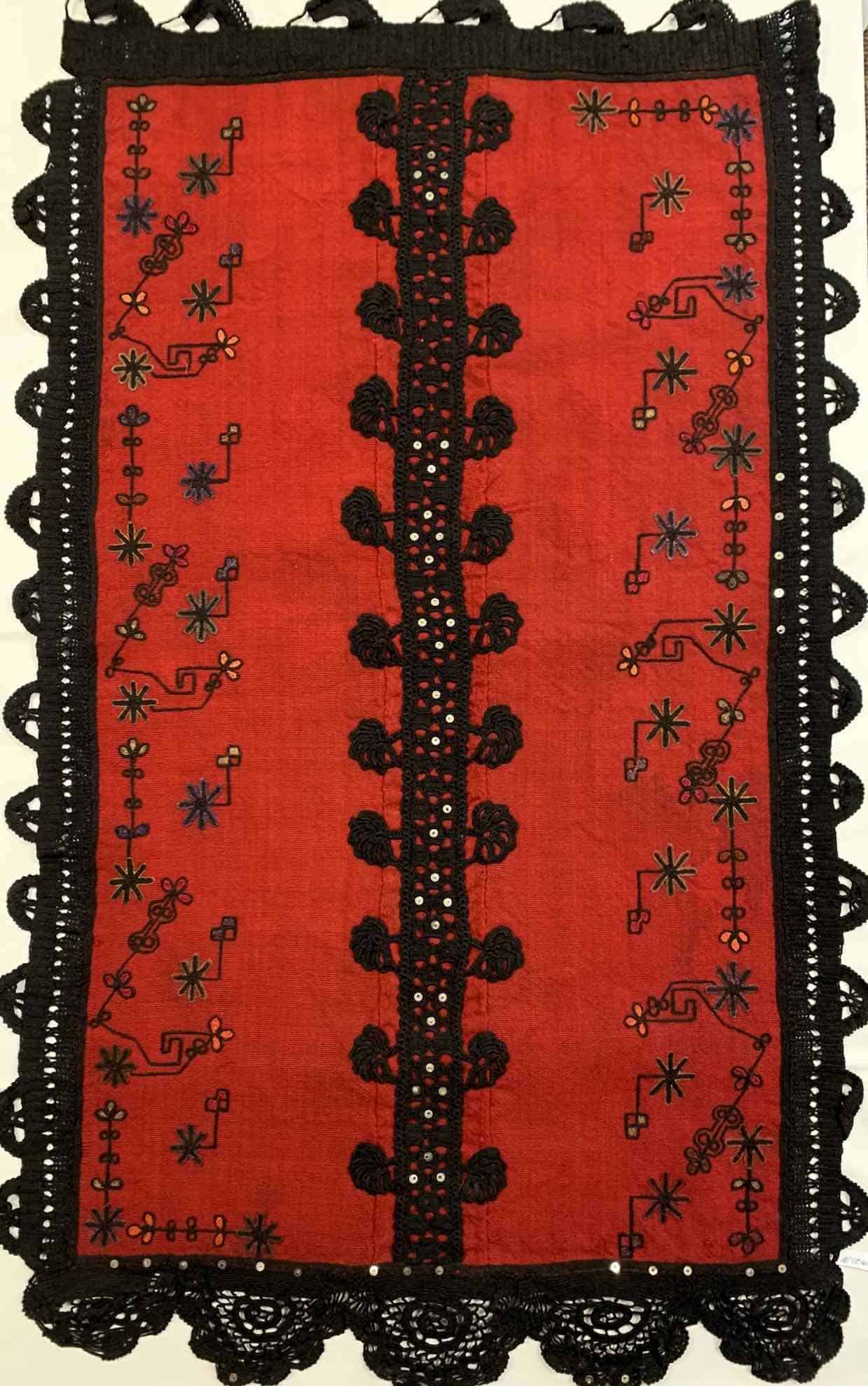 The cradle covers on view are from the William G. and Yvonne Lockwood collection of Balkan material culture collected in the early 1970s as part of a research project. These well-used cradle covers from Kosovo, unique to this region, were used as a decorative and protective cover over a baby’s cradle. The covers are handmade from hand-loomed natural wool or cotton, and are embellished with crocheted wool trim, elaborate embroidered designs and often coins, beads, or buttons. Common to most of them is the crocheted strip down the vertical center. The covers in this exhibit date from approximately post-World War II-1950.